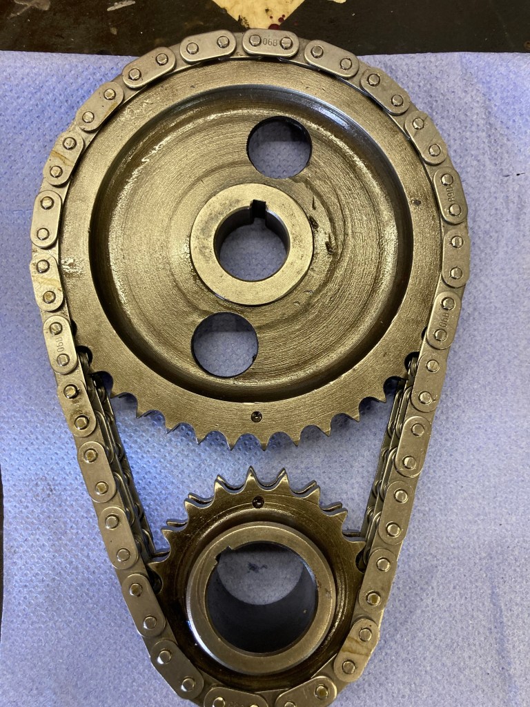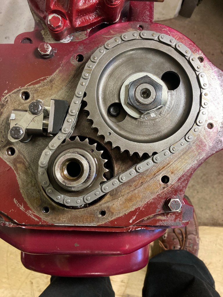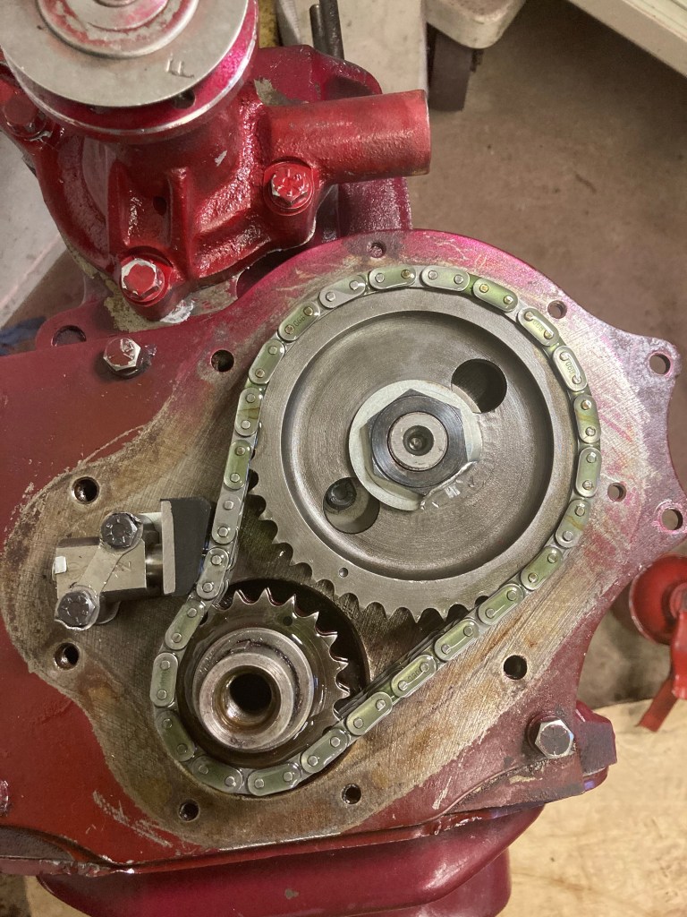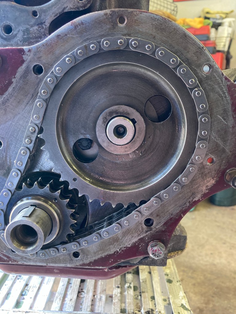 A new camshaft, followers, pushrods, timing gear, chain, tensioner and crank gear were fitted.