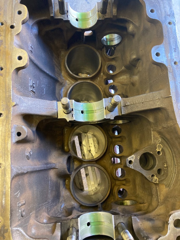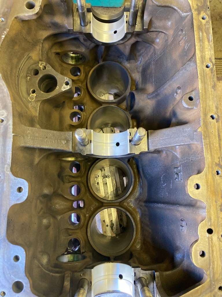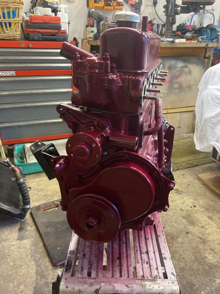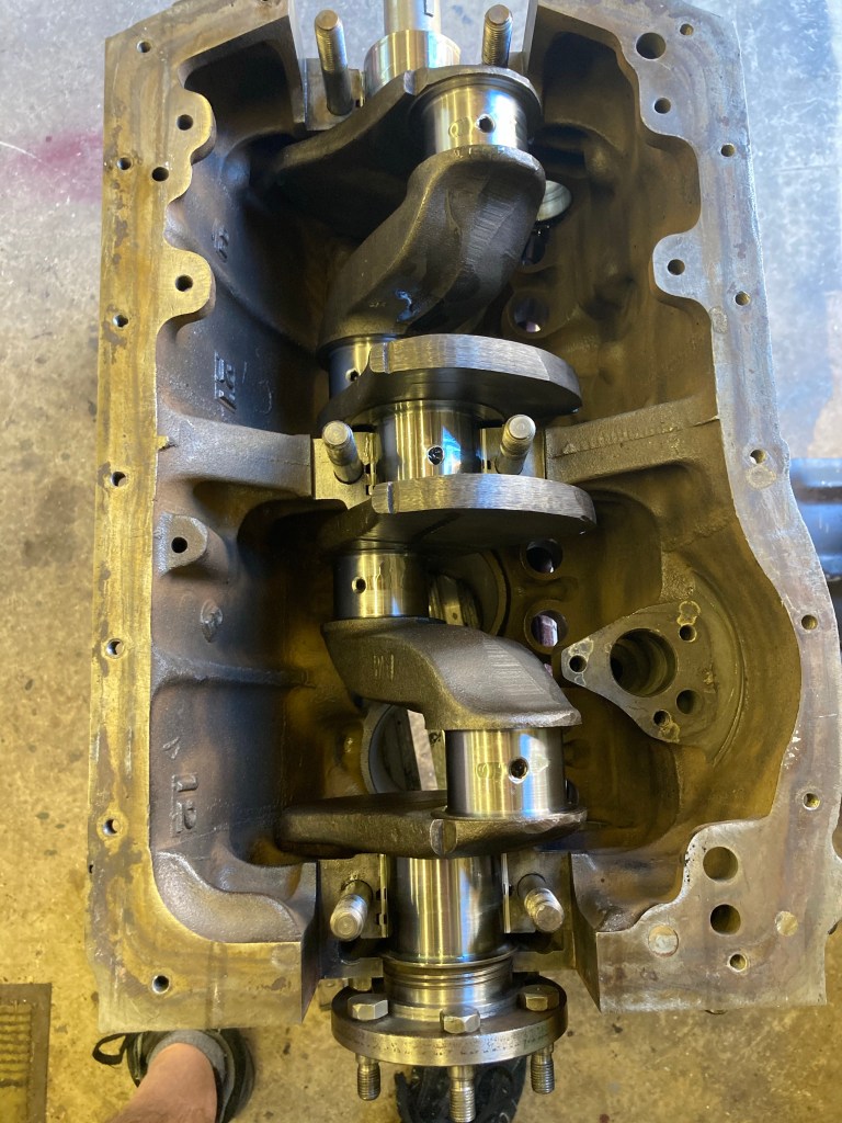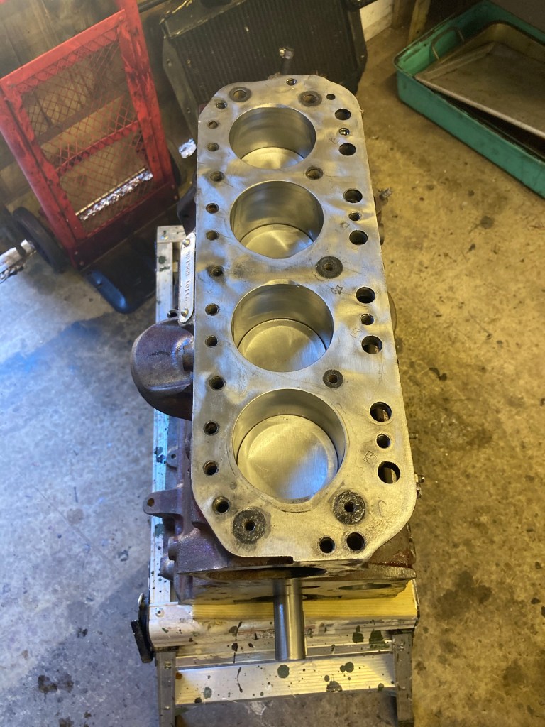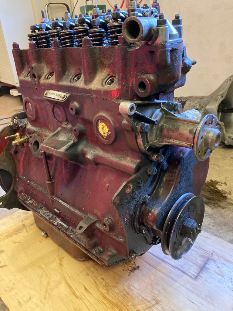 The engine was completely stripped and the crankshaft reground. The block was hot tank cleaned, with oilways and waterways thoroughly cleaned. The bores were honed.