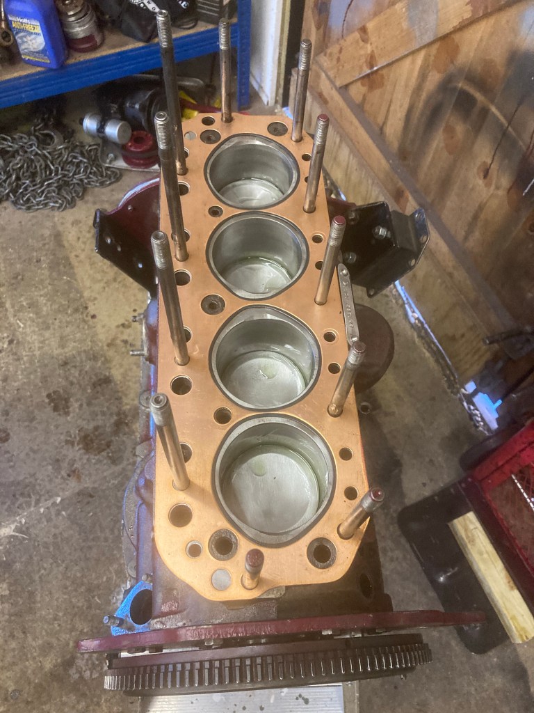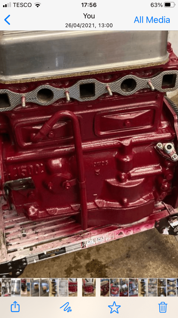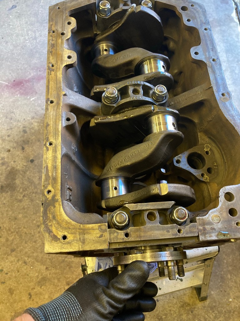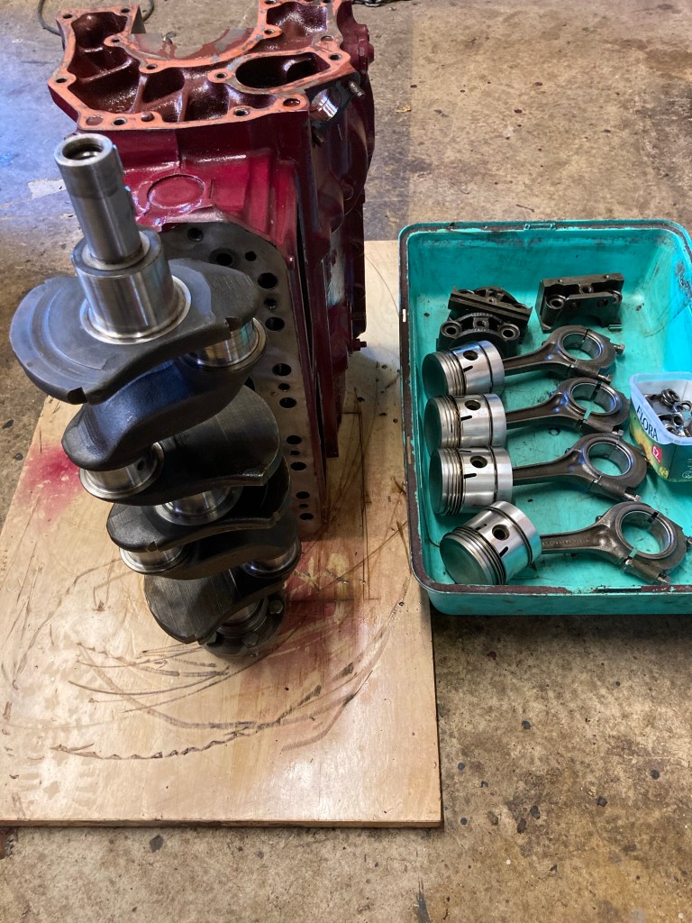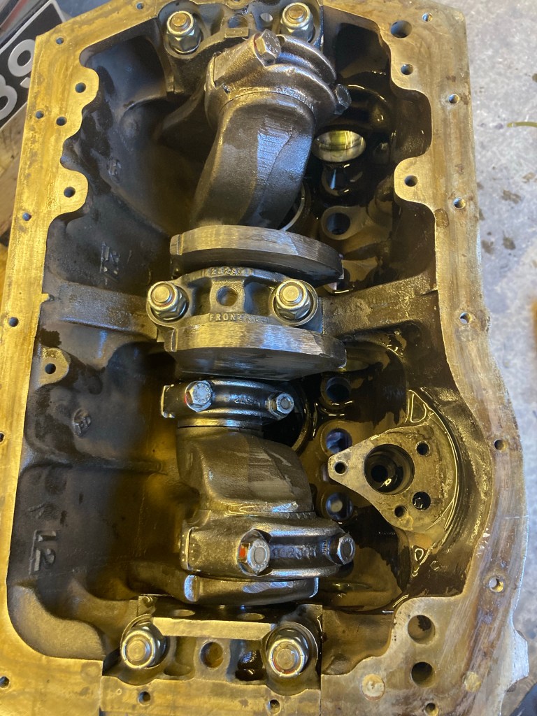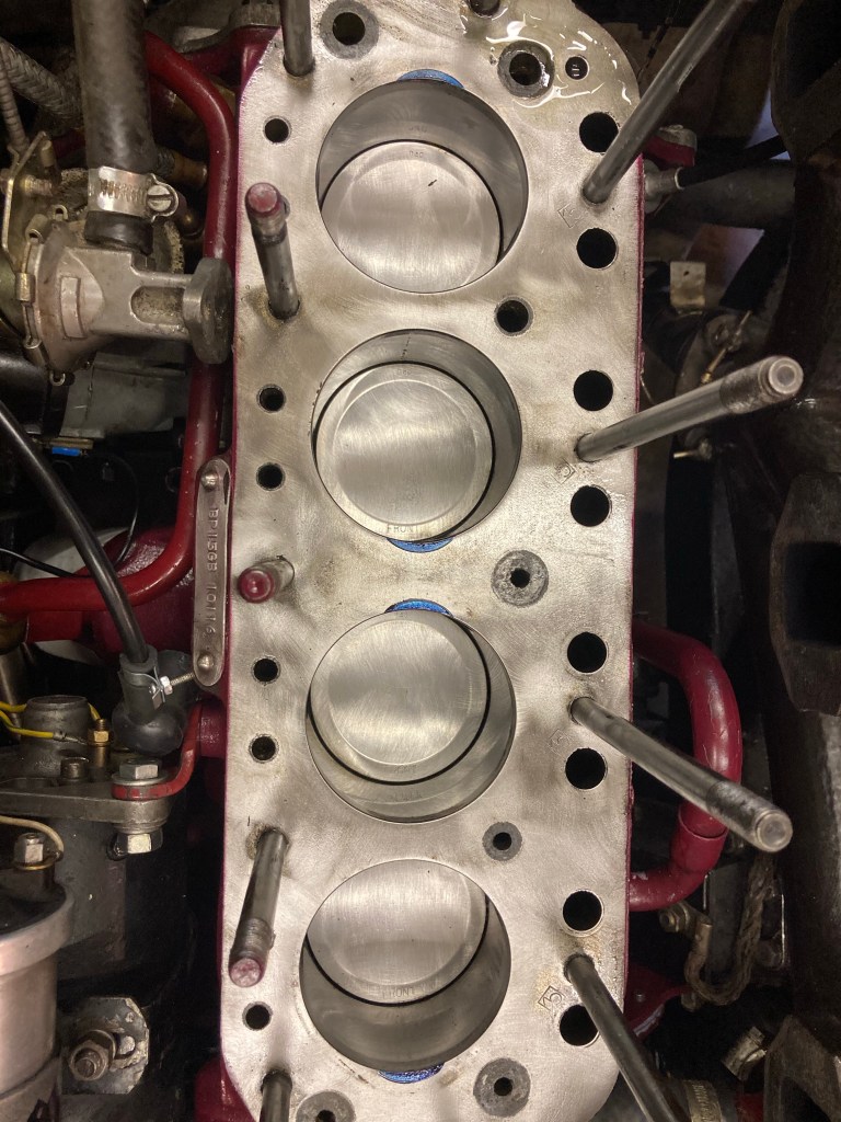 The engine was completely stripped and the crankshaft reground. The block was hot tank cleaned, with oilways and waterways thoroughly cleaned. The bores were honed.