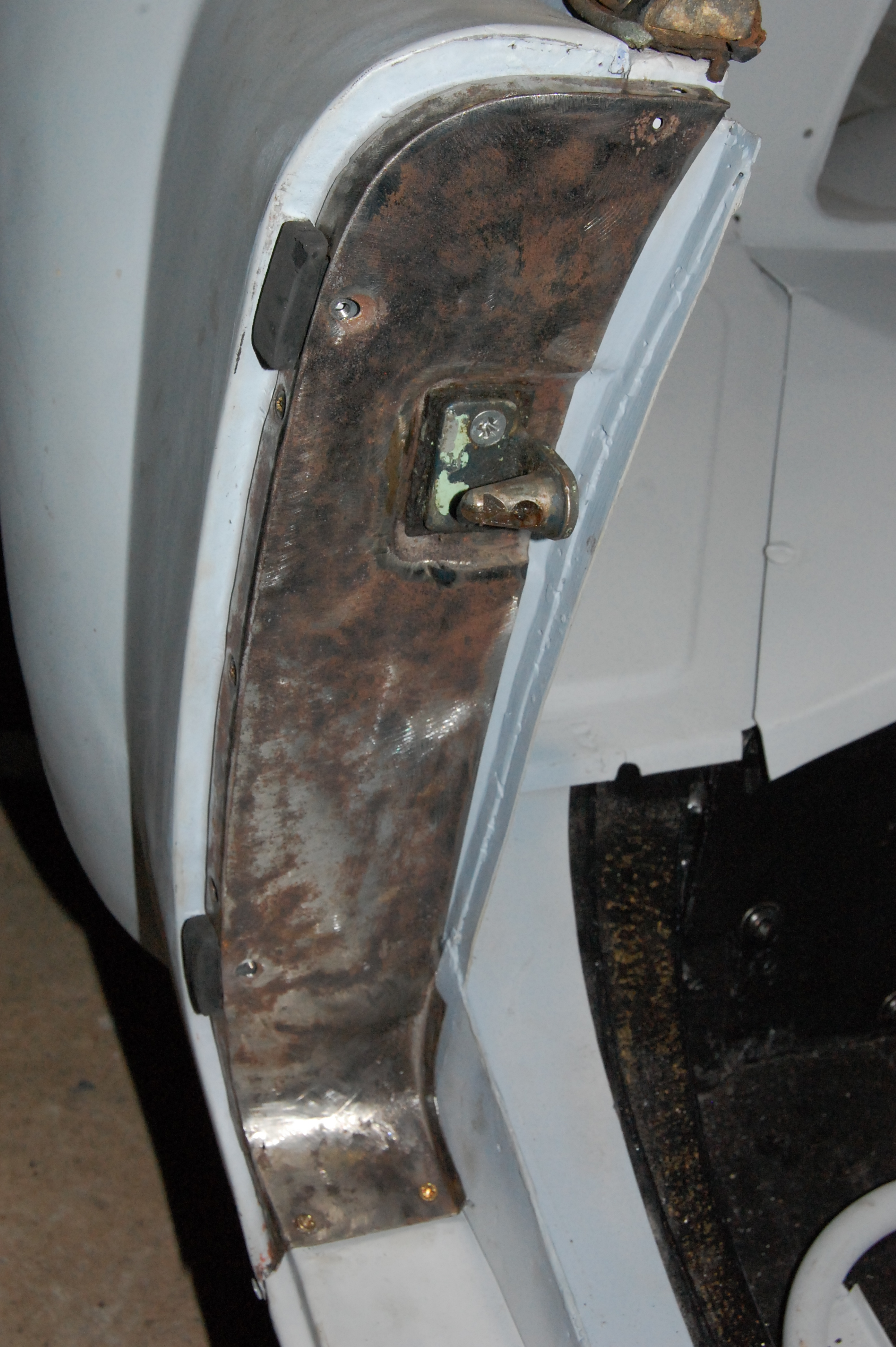 At this stage it’s essential to fit the door up with the catch mechanism, the striker and buffer rubbers.The new rubbers were far too big and required cutting and sanding back to fit.