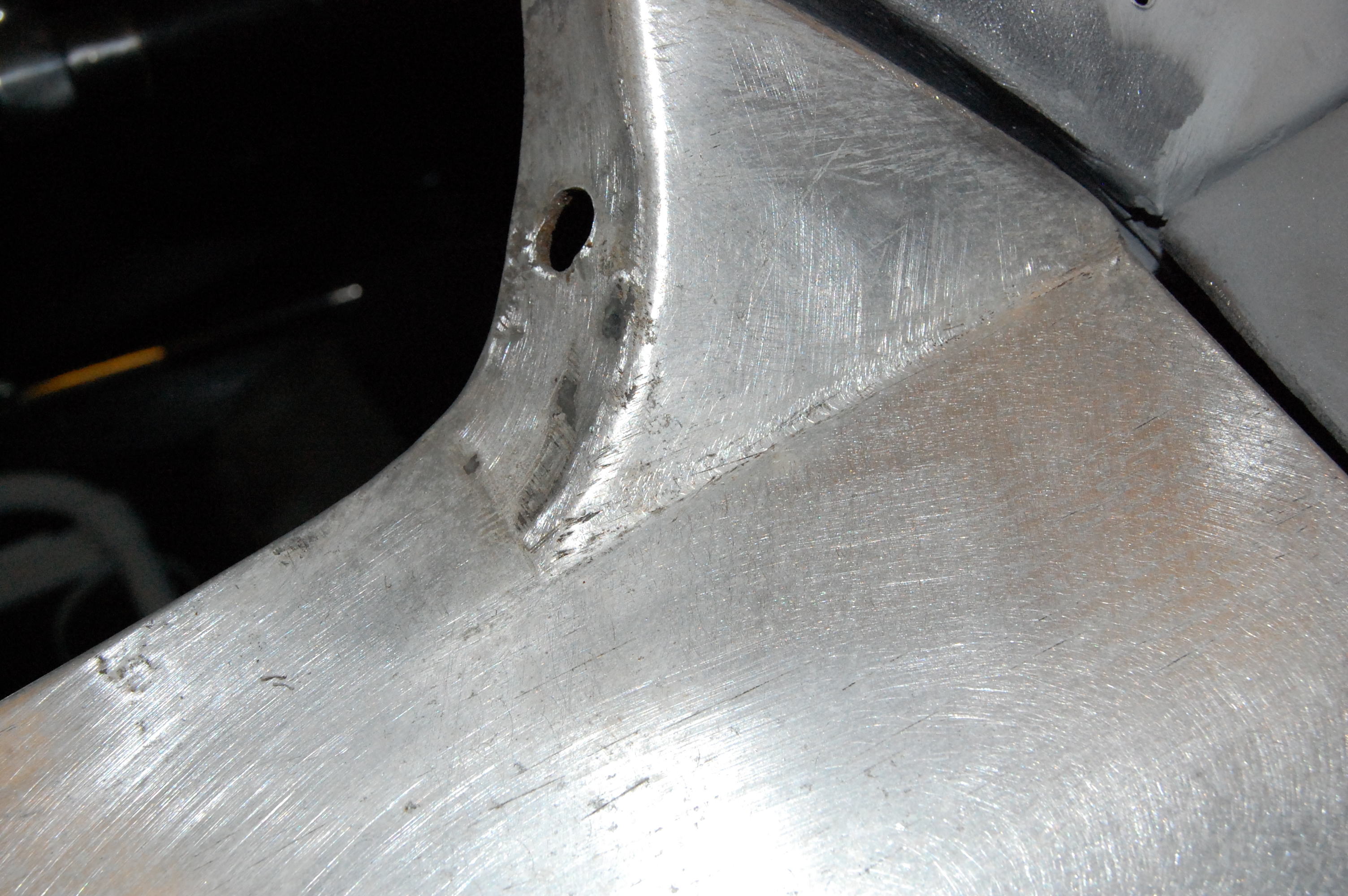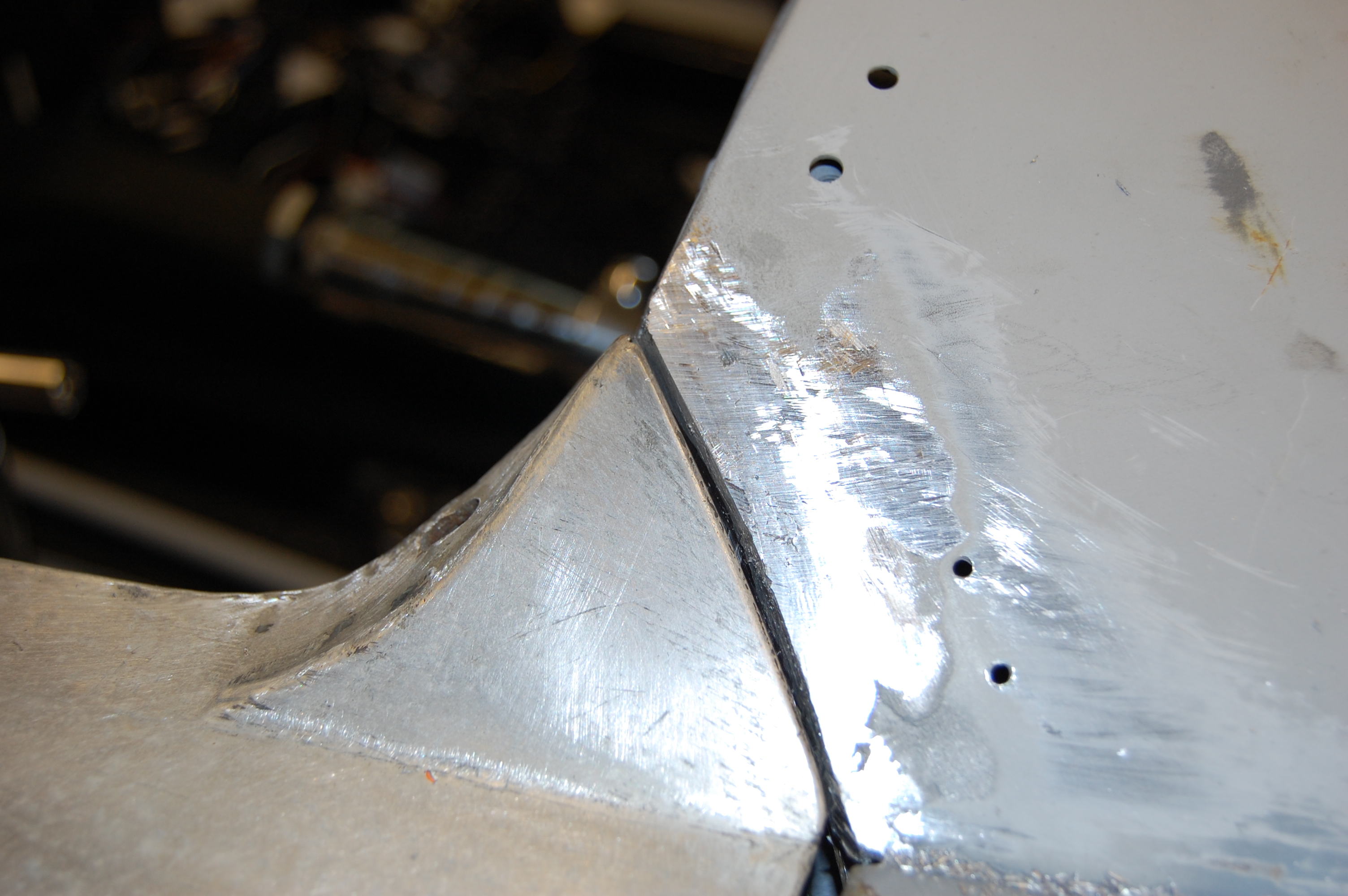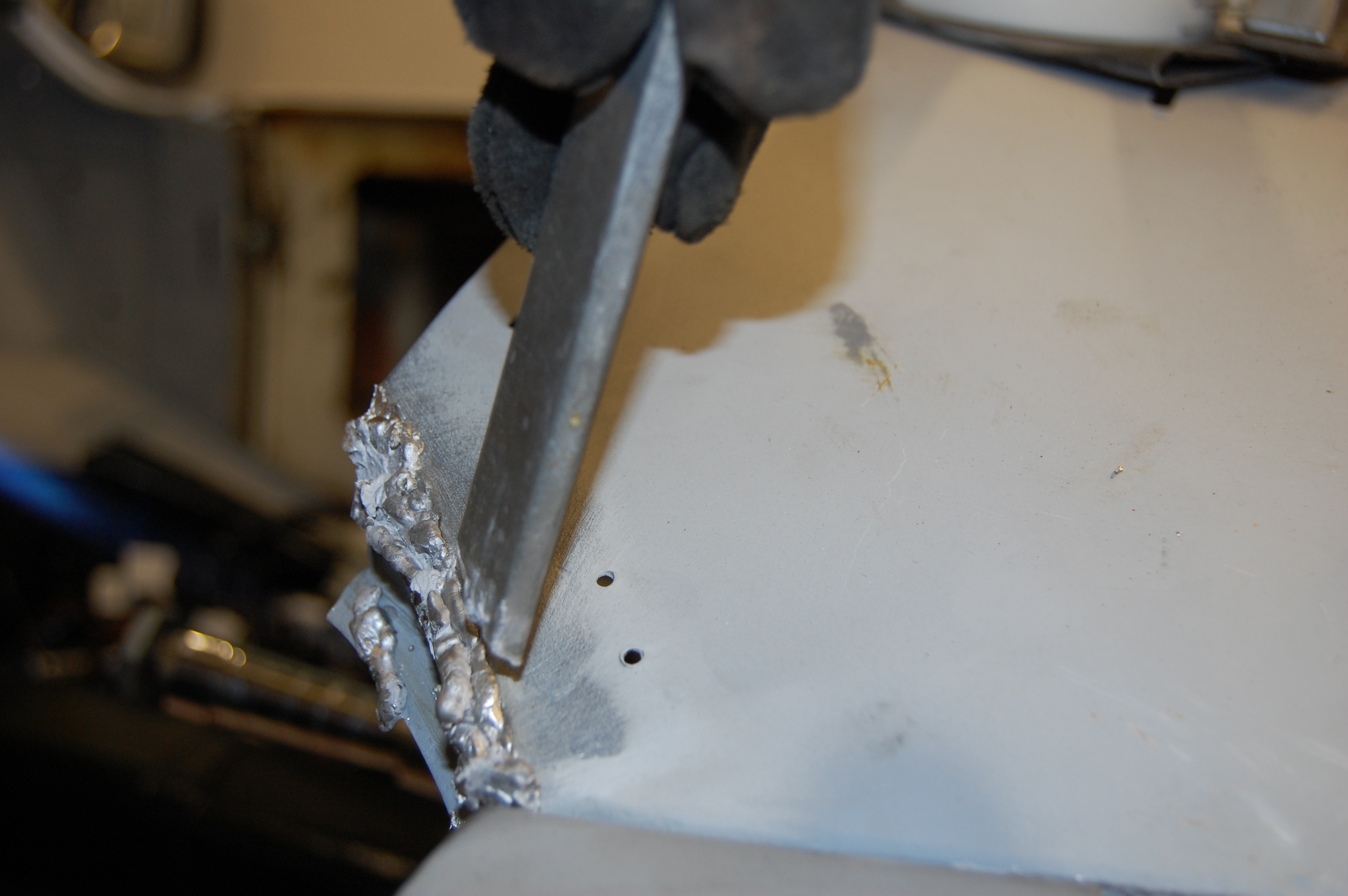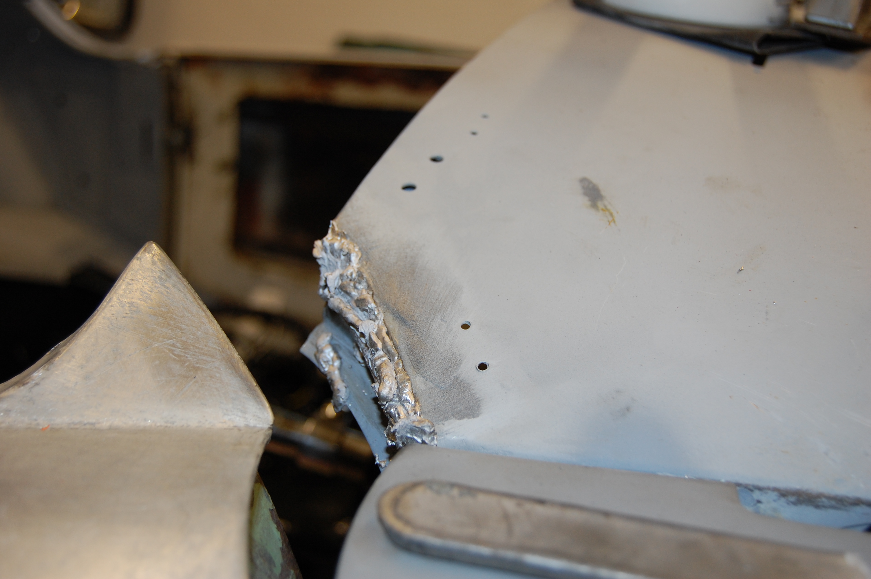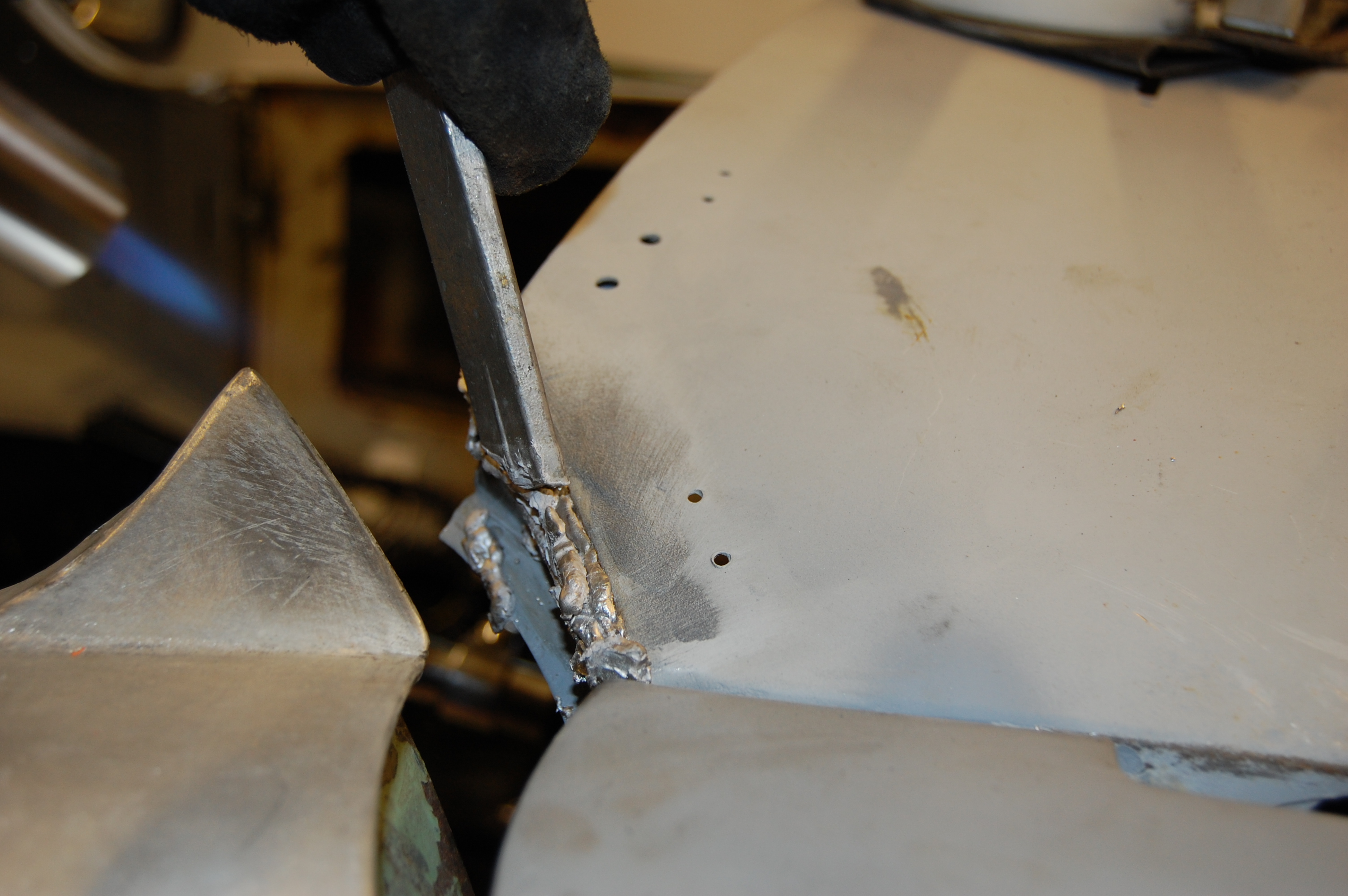Welds ground back and flange beaten into a lower profile to allow build up of lead load.