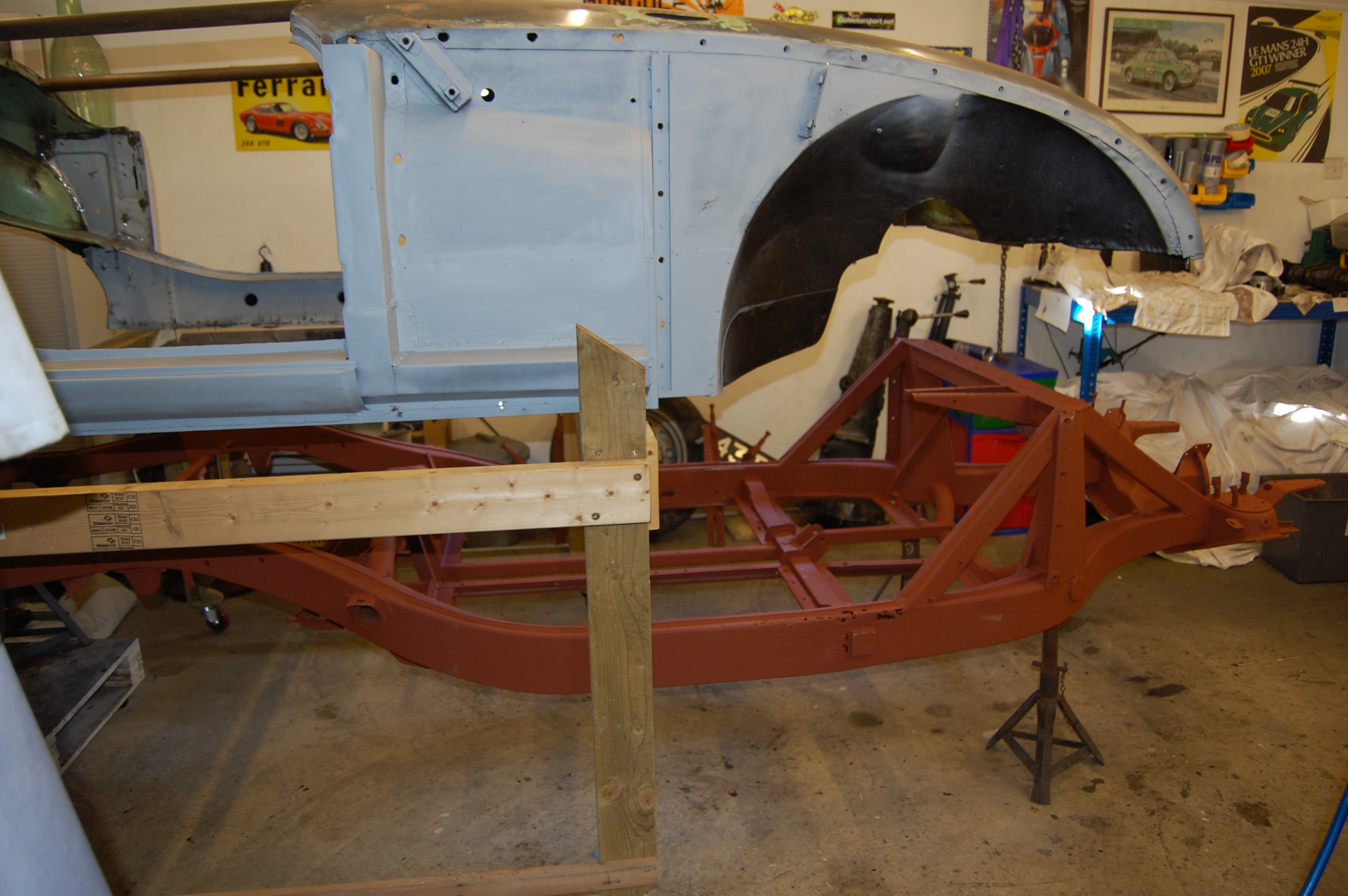 It’s a great moment when the body comes off and all is revealed for better or worse. The initial work on stripping down the chassis is filthy and a few more kilos of 55 year old greasy muck and rust are produced.