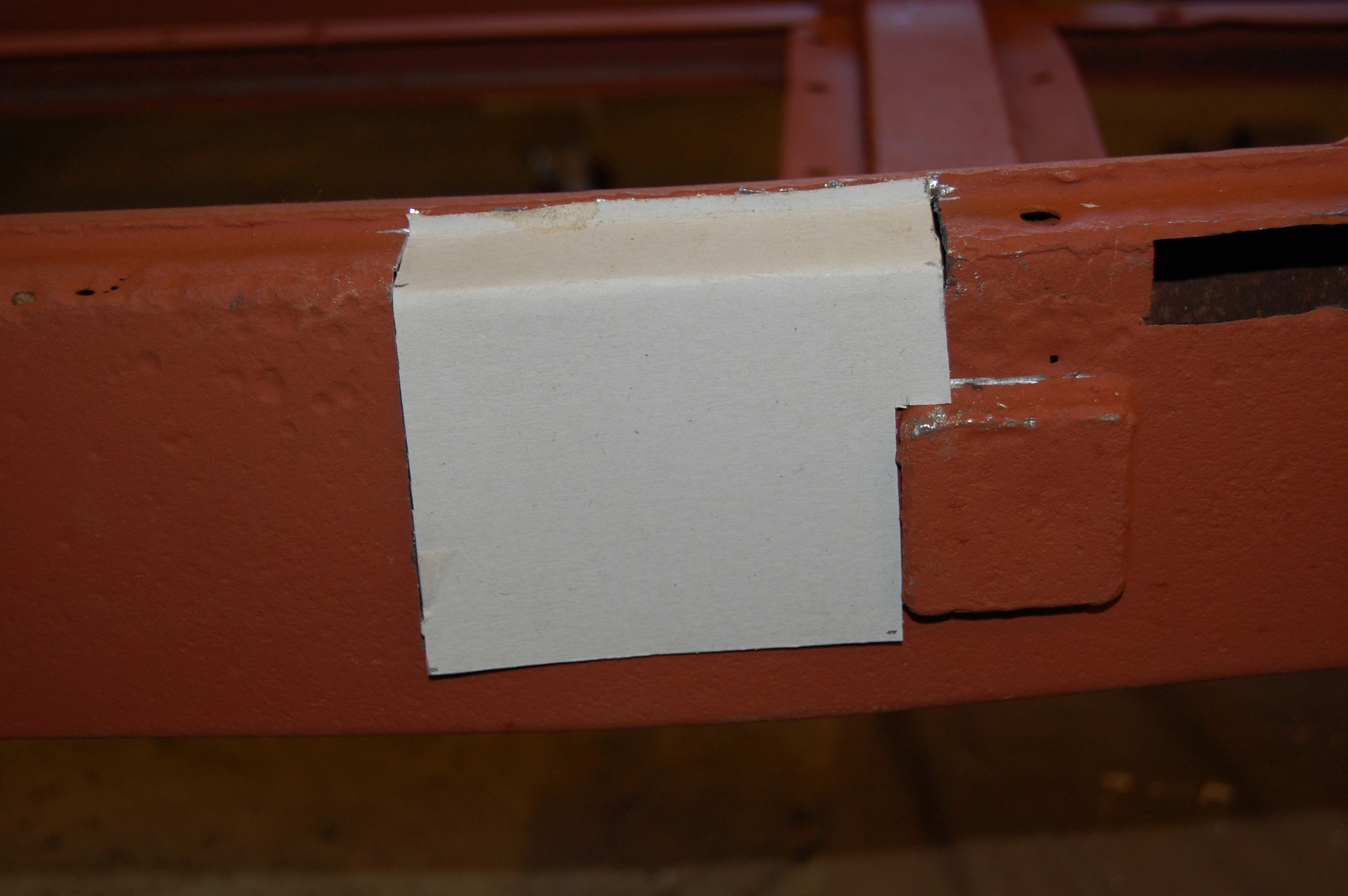 Preparing to make the chassis repair section. First a cardboard template – cereal boxes are the perfect weight of card.