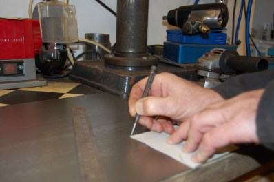 Trial fit and marking of retaining bolt holes, which in places are different to the originals due to the fitting of new chassis rails. The rear board has not been finished as I decided to re-use the original.