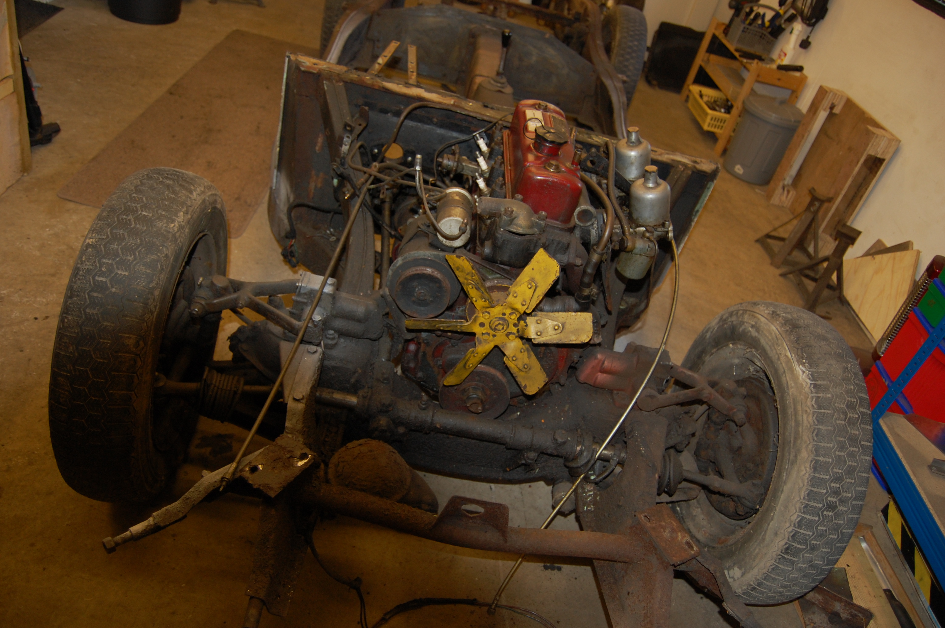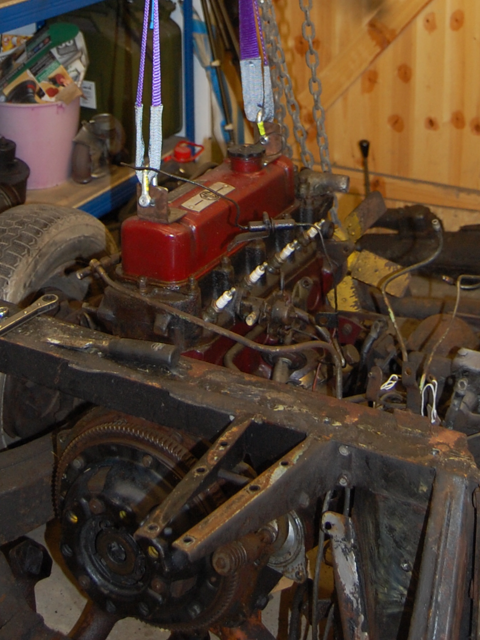 Removing the engine and gearbox with the body removed is straightforward and a much easier job than with the body in place.