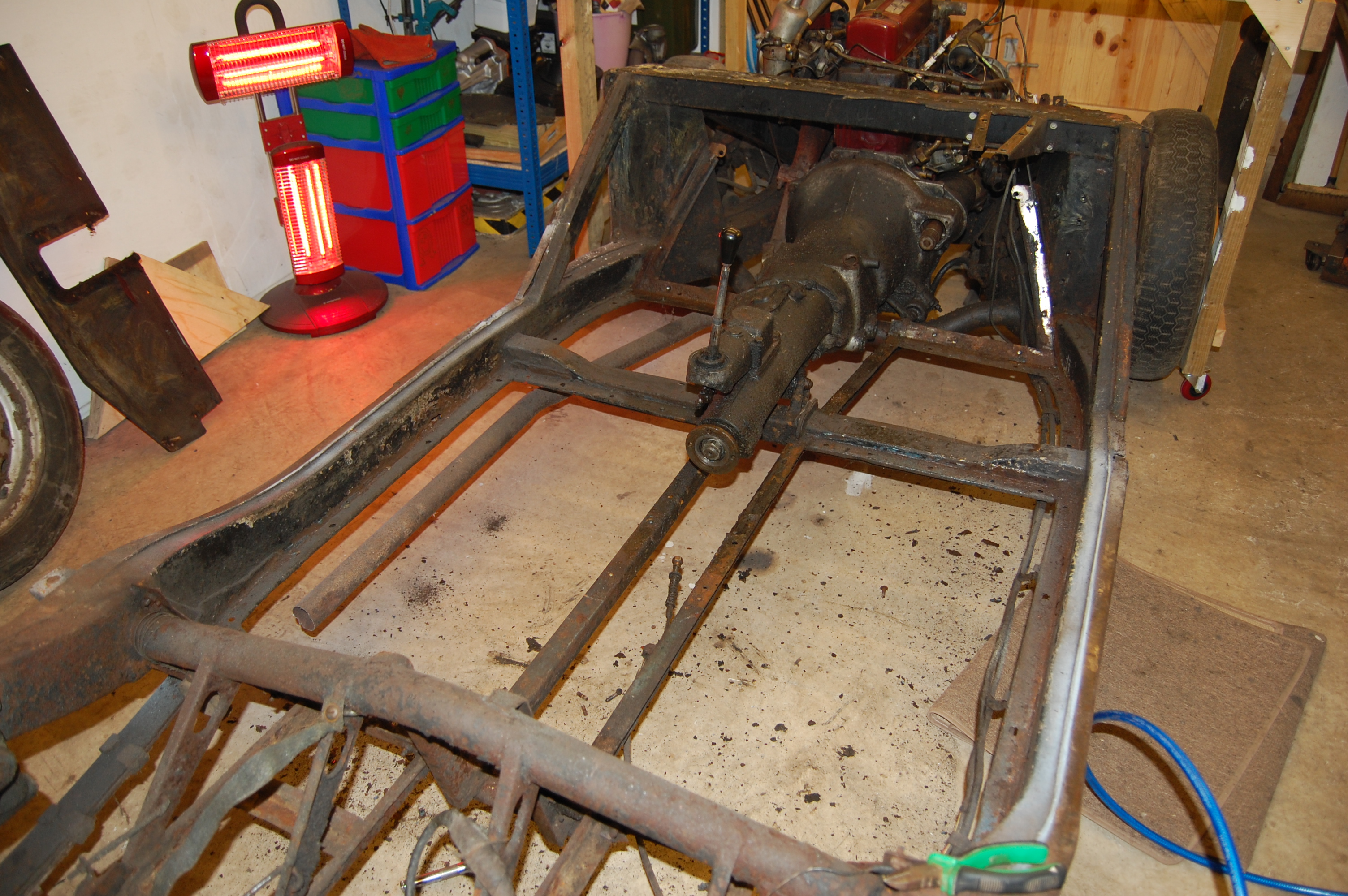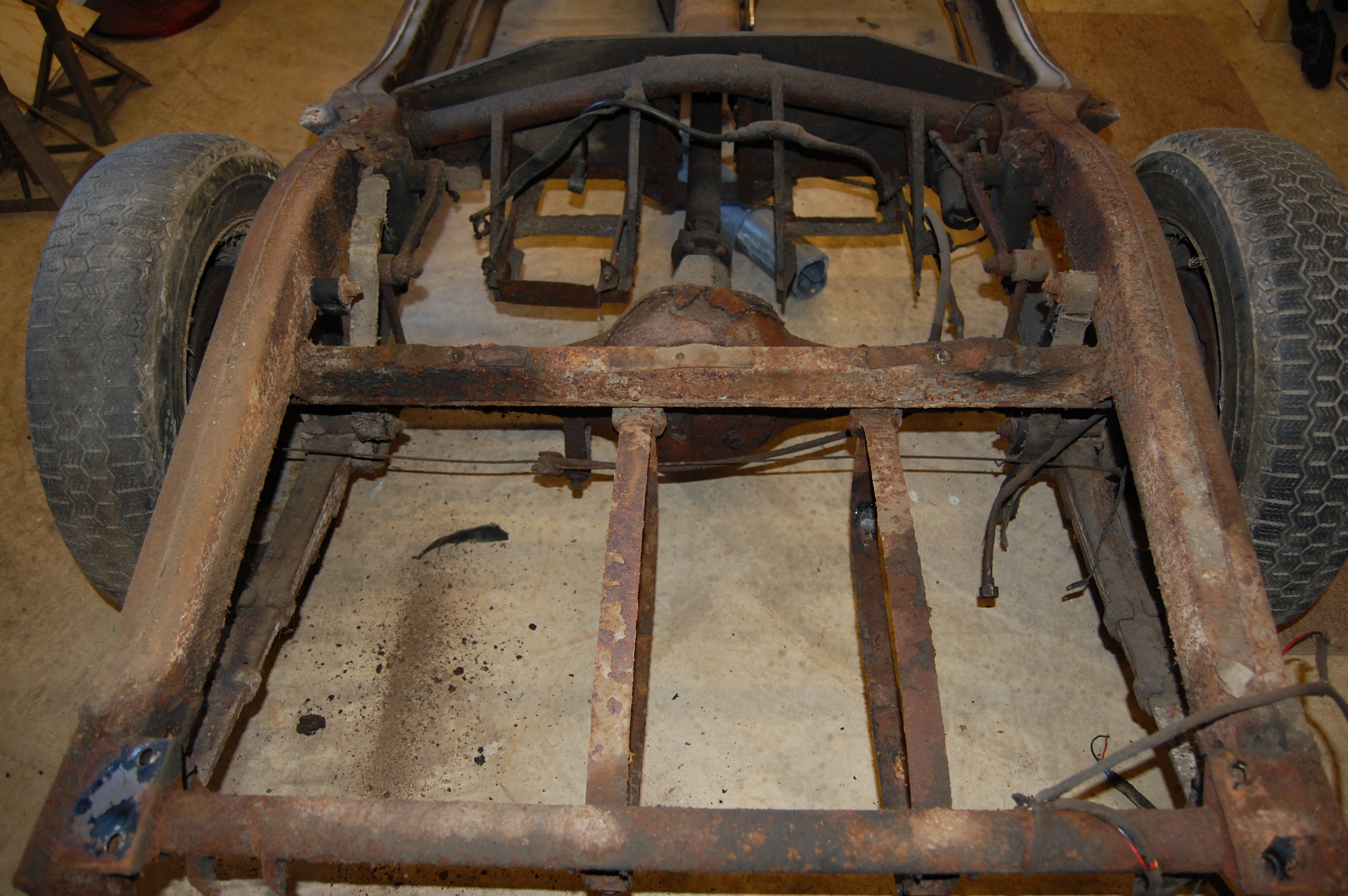 Fortunately, bad as it looks, the chassis was in good shape with mainly surface rust and a few holes to be dealt with.