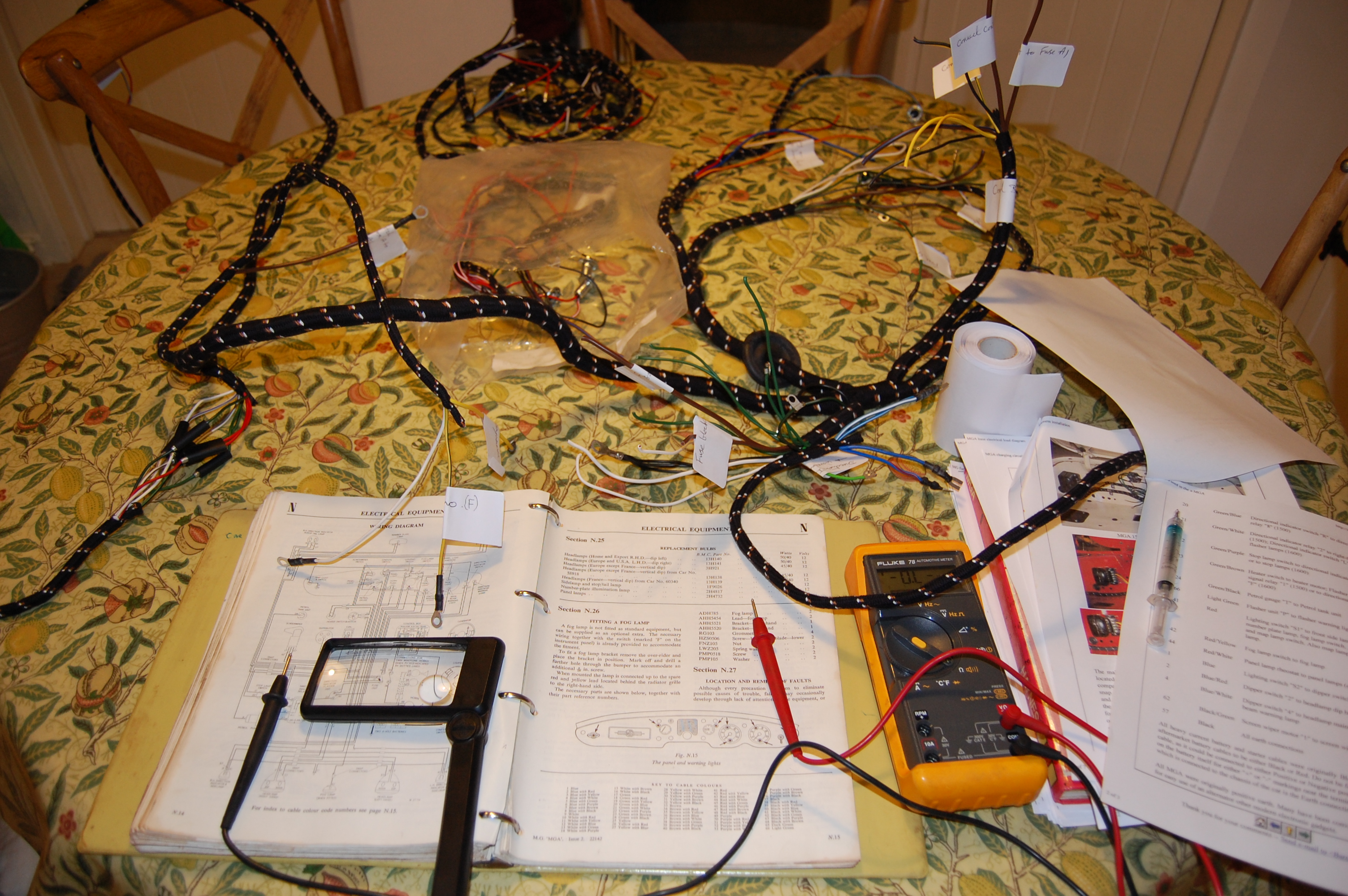 Winter indoor work…marking up the wiring loom. MGA 1500 wiring loom.