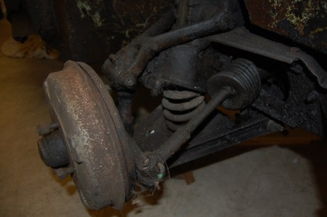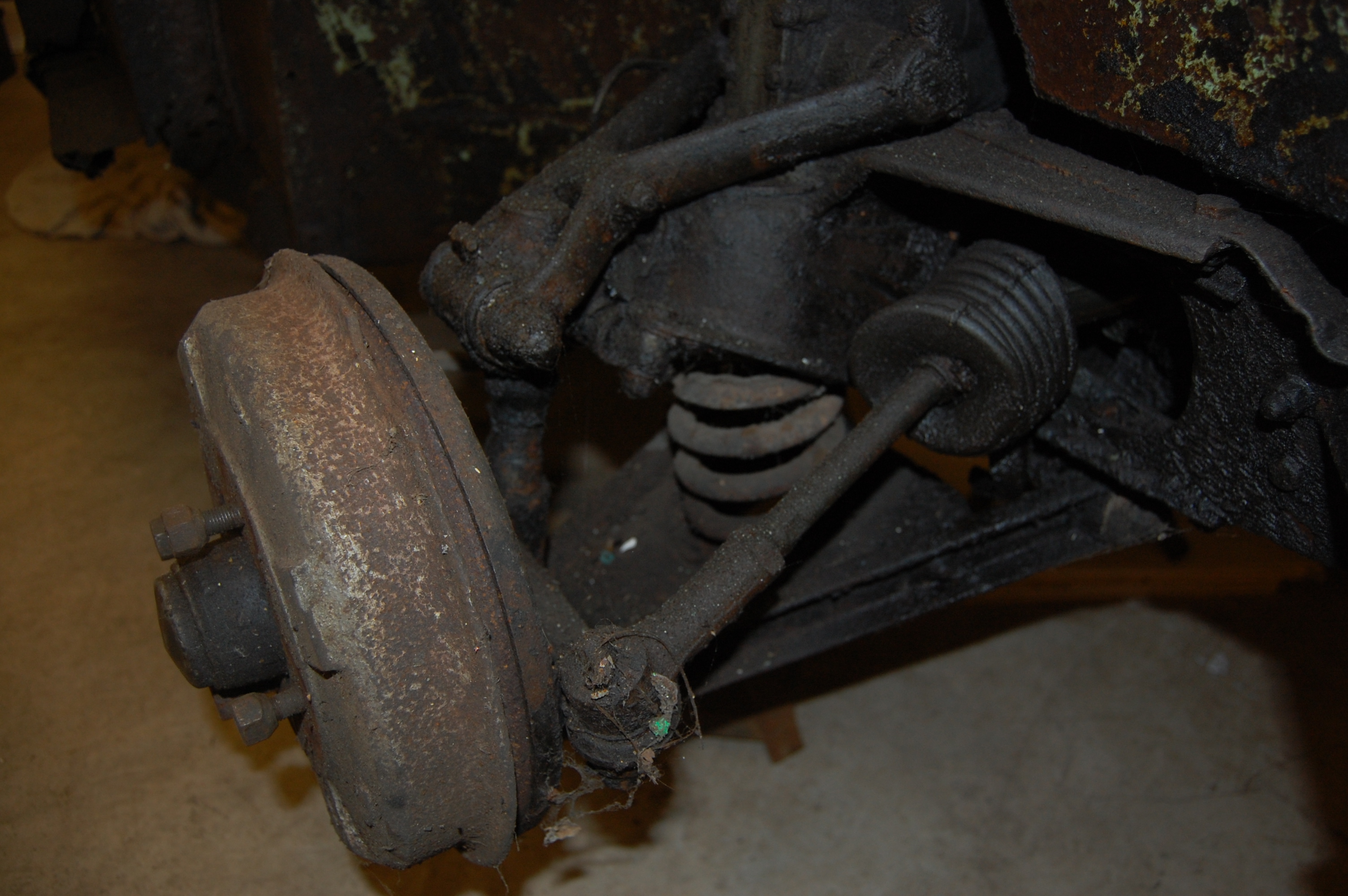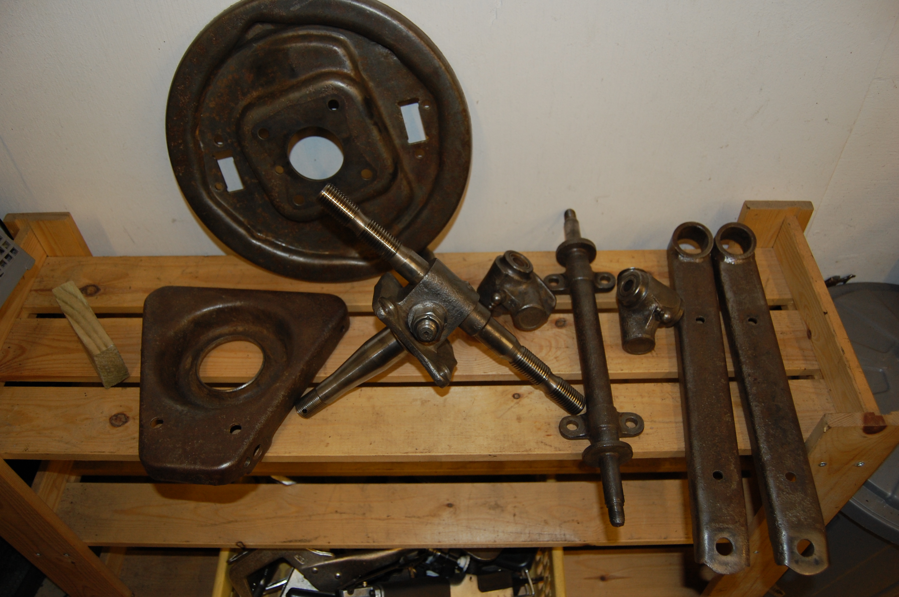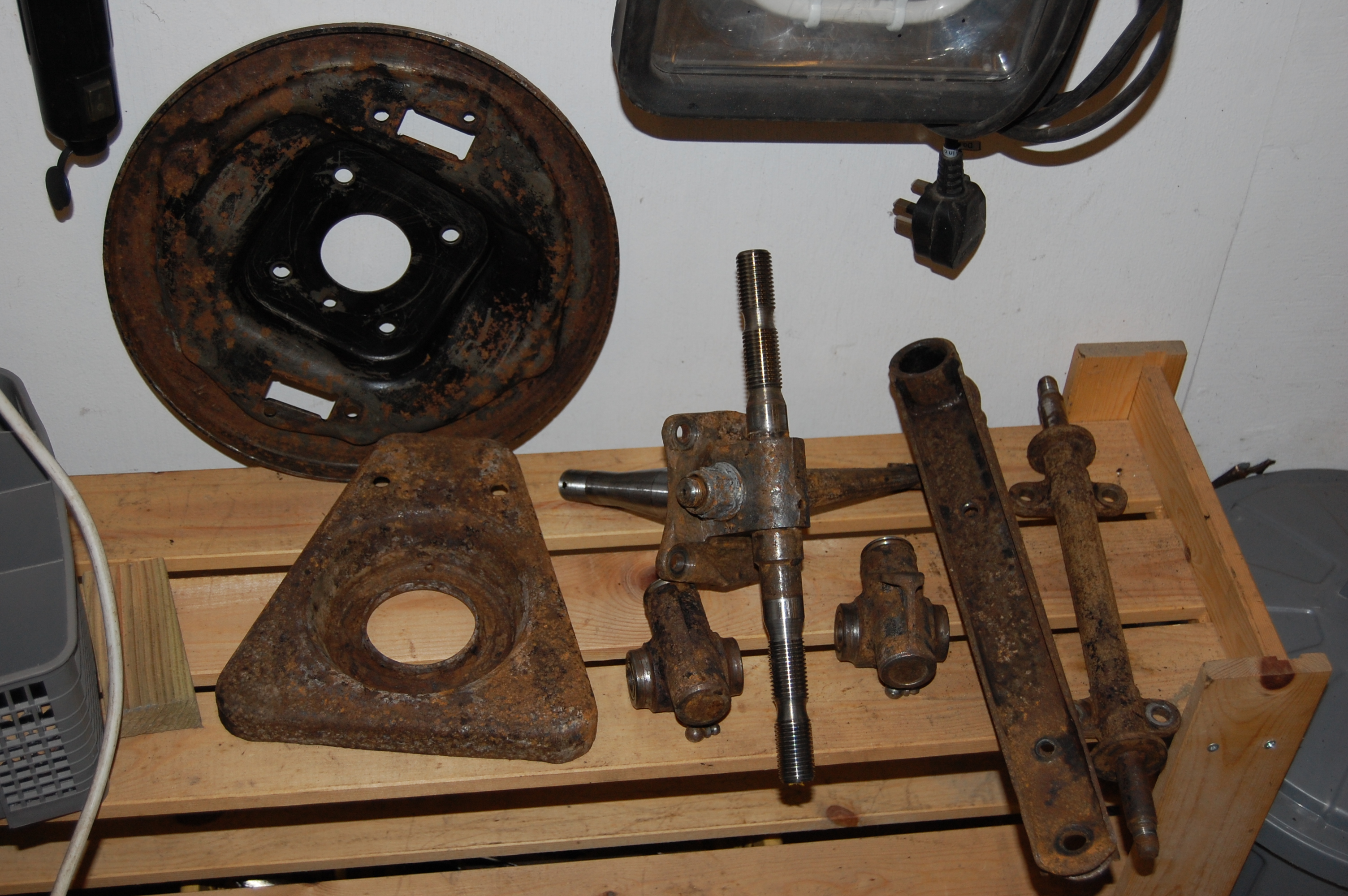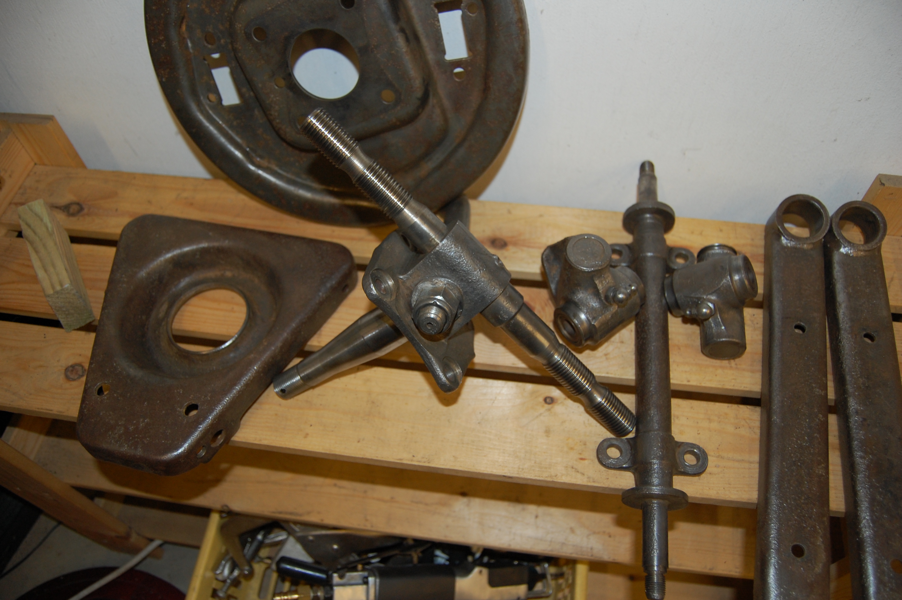 Cleaned of their thick layer of grease and road dirt and Jizer degreased. King pins and trunions are in good condition and servicable. Power wire brushing and painting to follow.