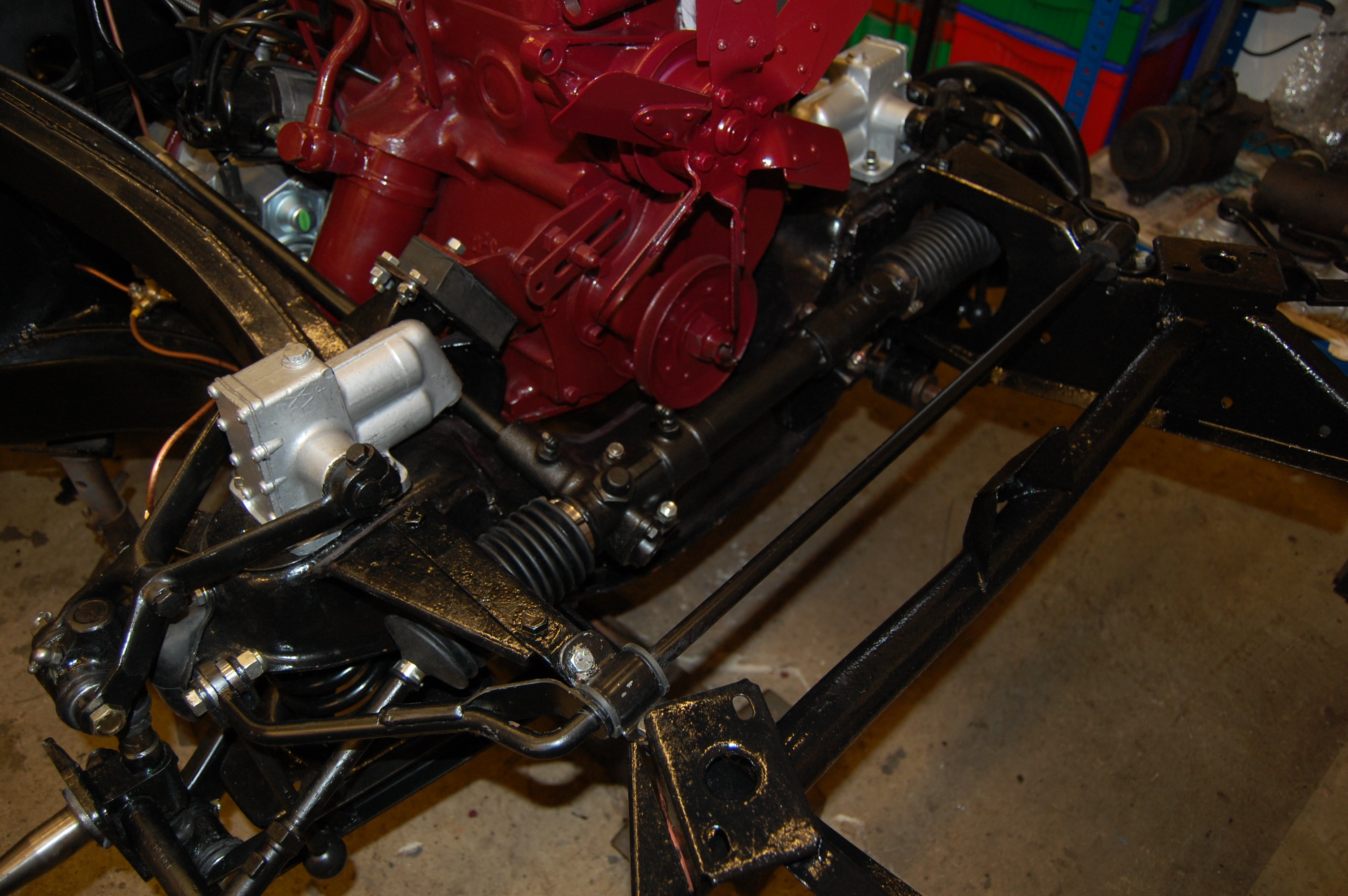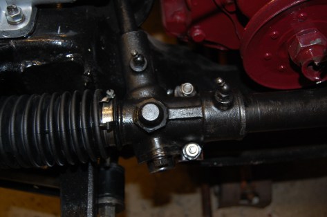 Steering rack was checked, cleaned, re-shimmed, fitted with new rubber bellows and filled with oil.