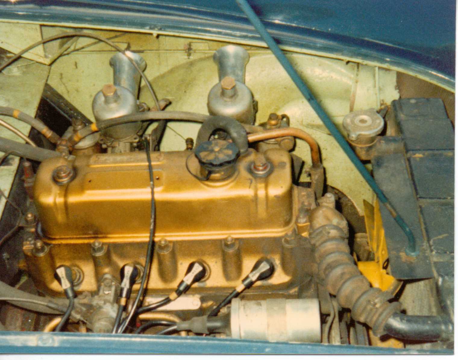 When I bought the car in 1974 it was fitted with a BMC ‘Gold Seal’ reconditioned engine. Open trumpets on the twin 1 1/2 H4 SUs was a quick way to ruining the engine, but it added to the great sound track!