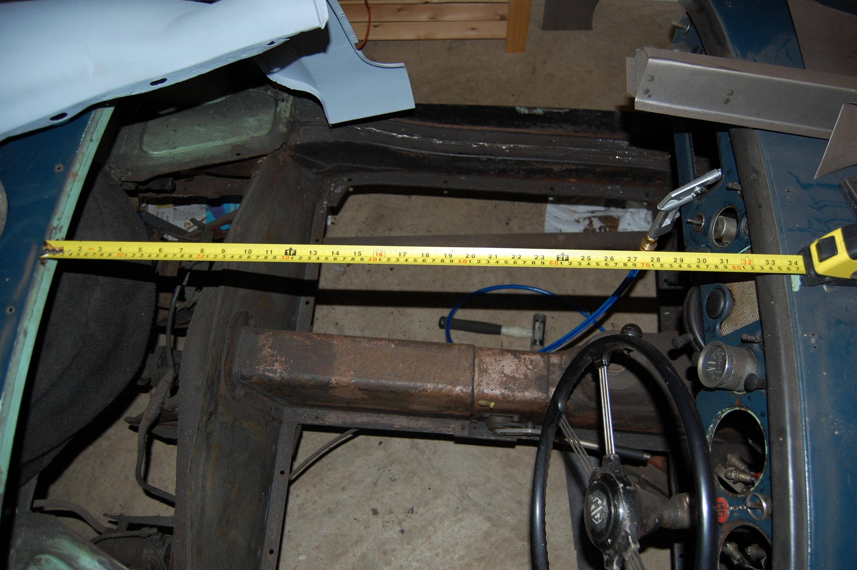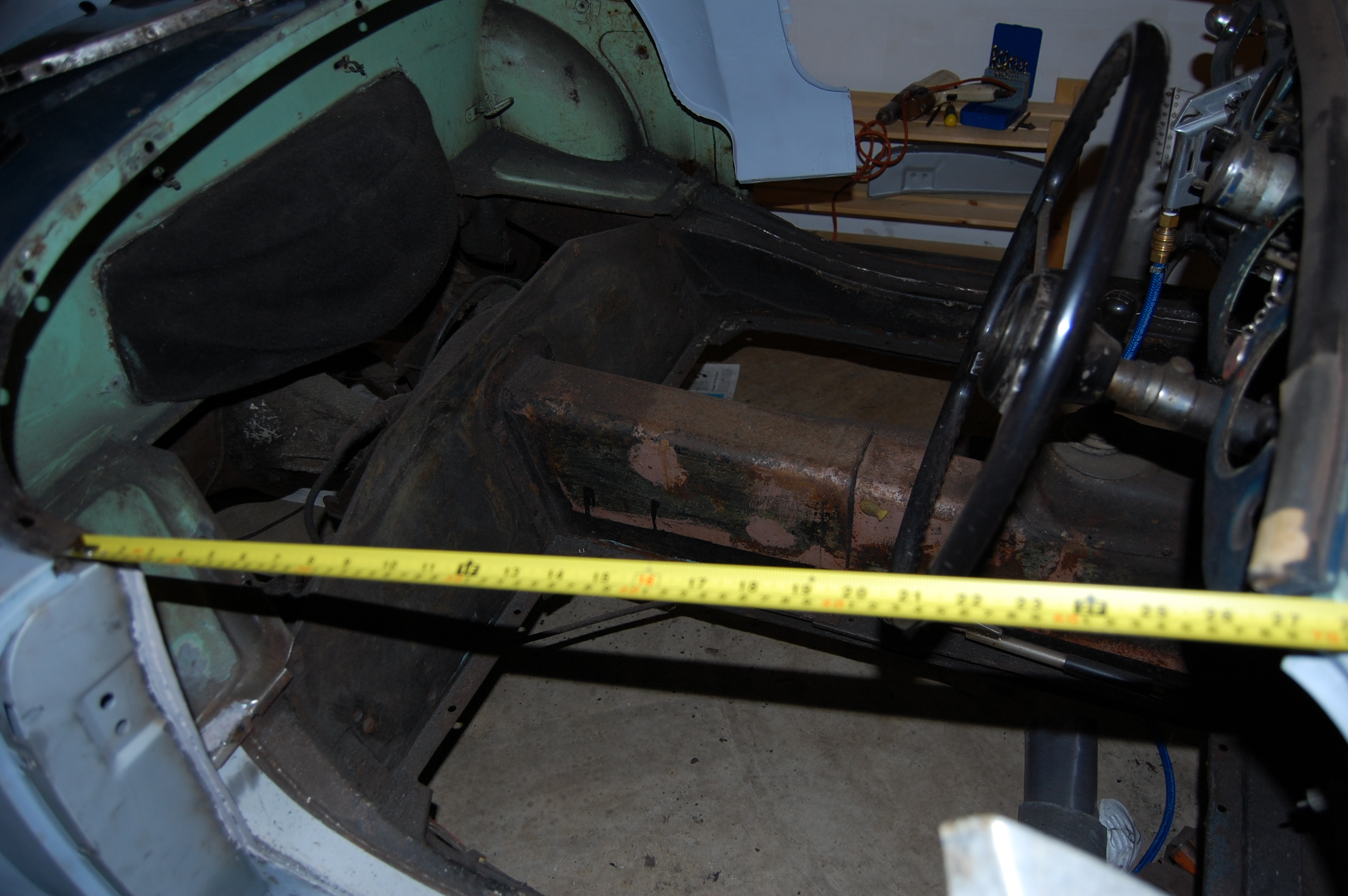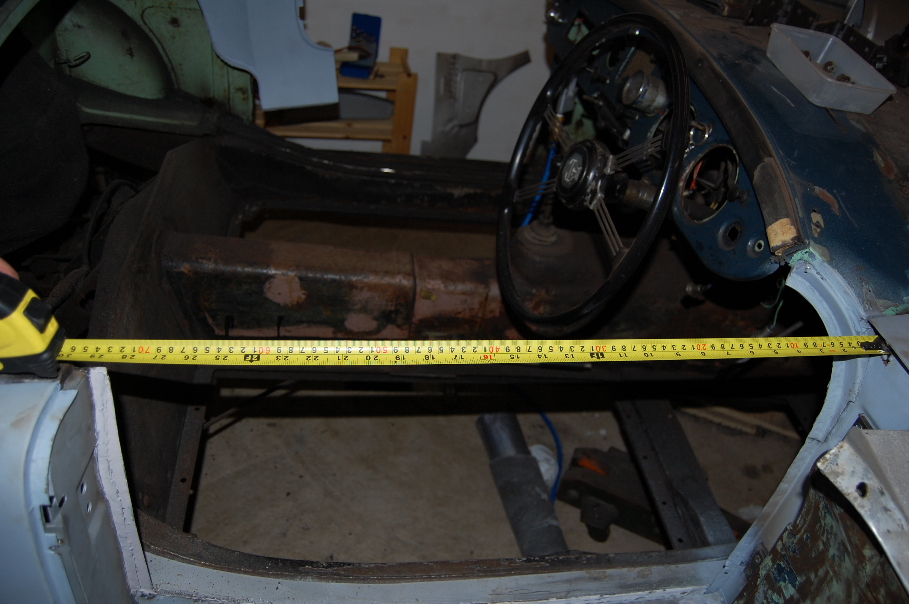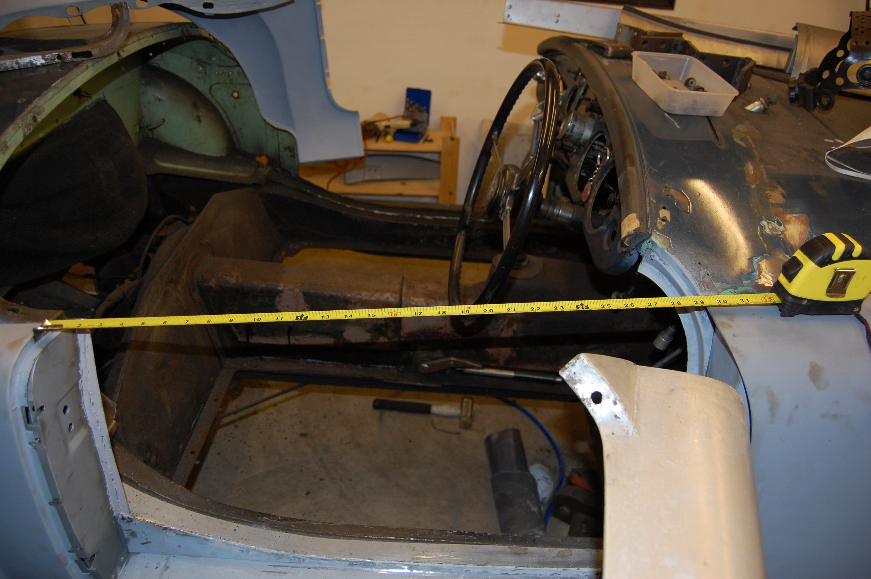 The following shots were taken to help fellow restorer Andy Harris with his task of reuniting the seperated front and rear bodyshell of his car. Hopefully the measurements may be of assistance to others.